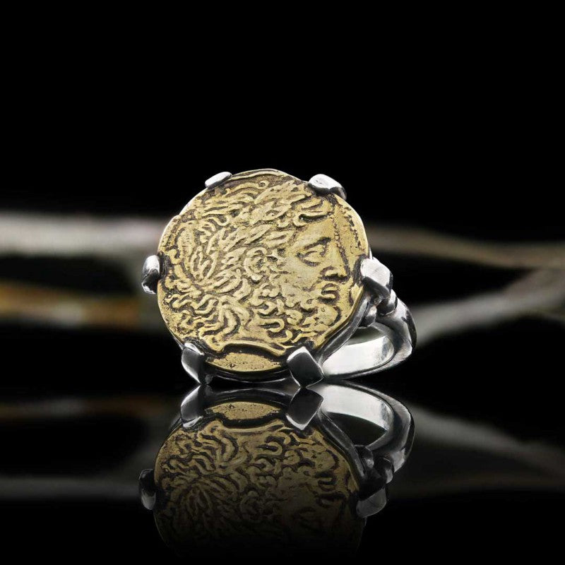 Sterling Silver Special Design Old Greek Coin Women Ring