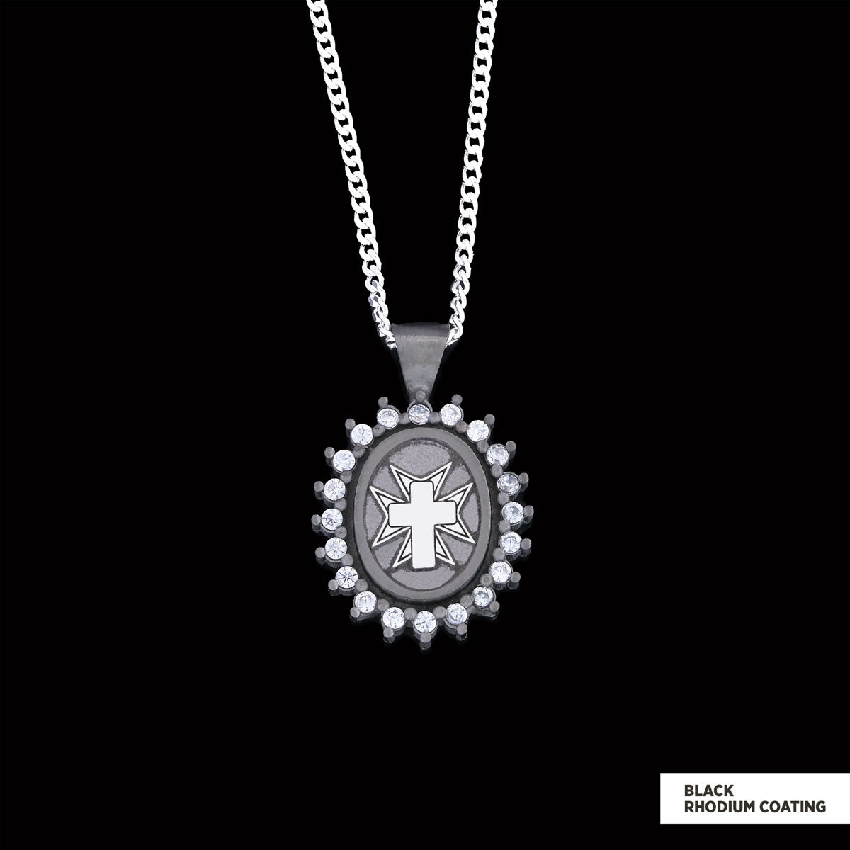 Stone Cross Silver Necklace, Gold Plated Silver Christian Cross Stone Pendant, Silver Oval Cross Necklace Black Rhodium Coating