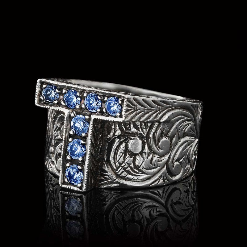 Unique Design Handmade Monogram T Bold Alphabet Ring