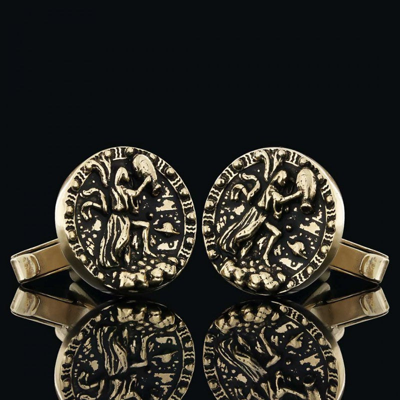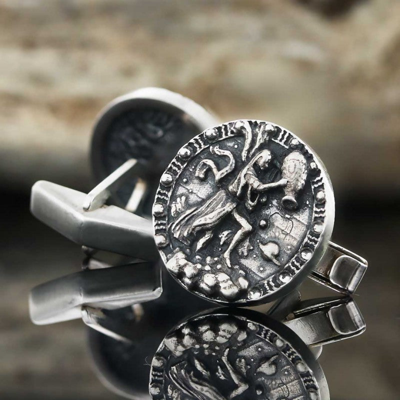Unique Design Silver Round Aquarius Cufflink