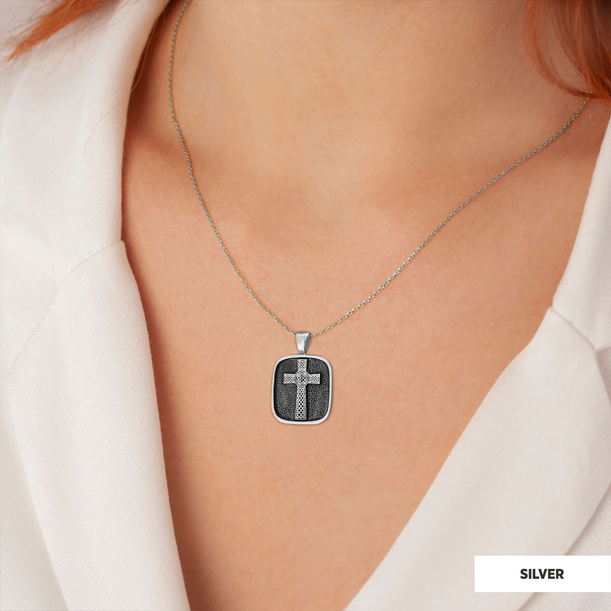 925 Sterling Silver Gold Plated Crusader Christian Necklace, Silver Cross Necklace, Silver Christian Cross Pendants Silver