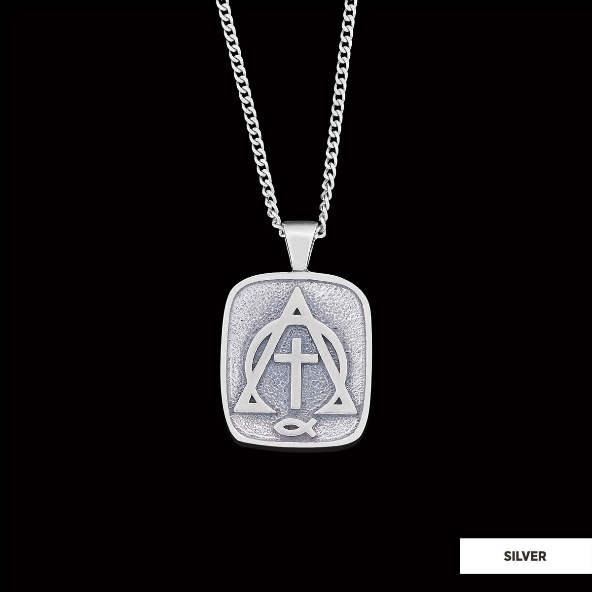 Christian Cross Ichthus Necklace, Alpha Omega Cross Necklace, Square Christianity Ichthus Pendant