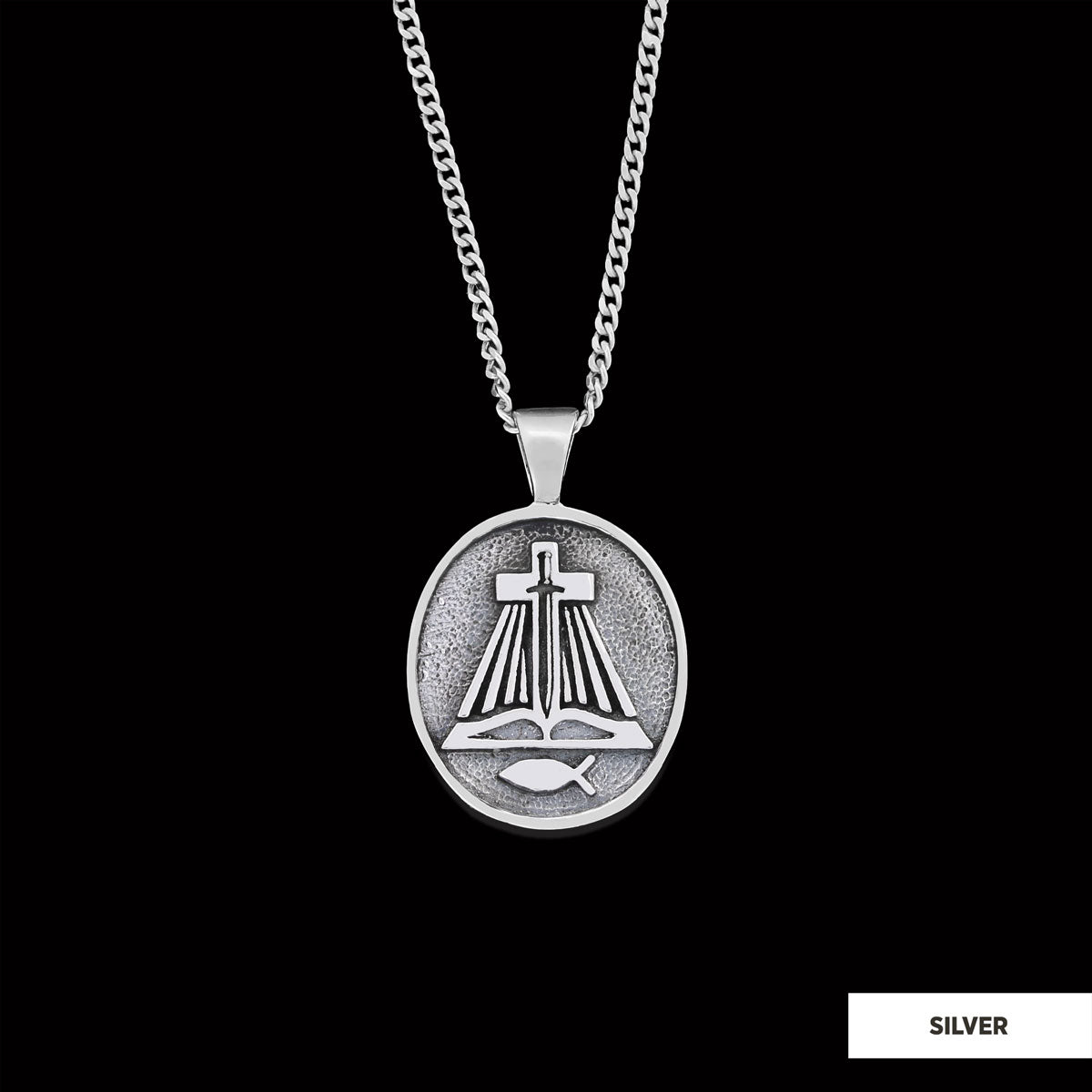 Christian Sword Necklace, Religion Book Necklace, Christianity Ichthus Necklace, Cross Necklace, Religious Jewelry Silver