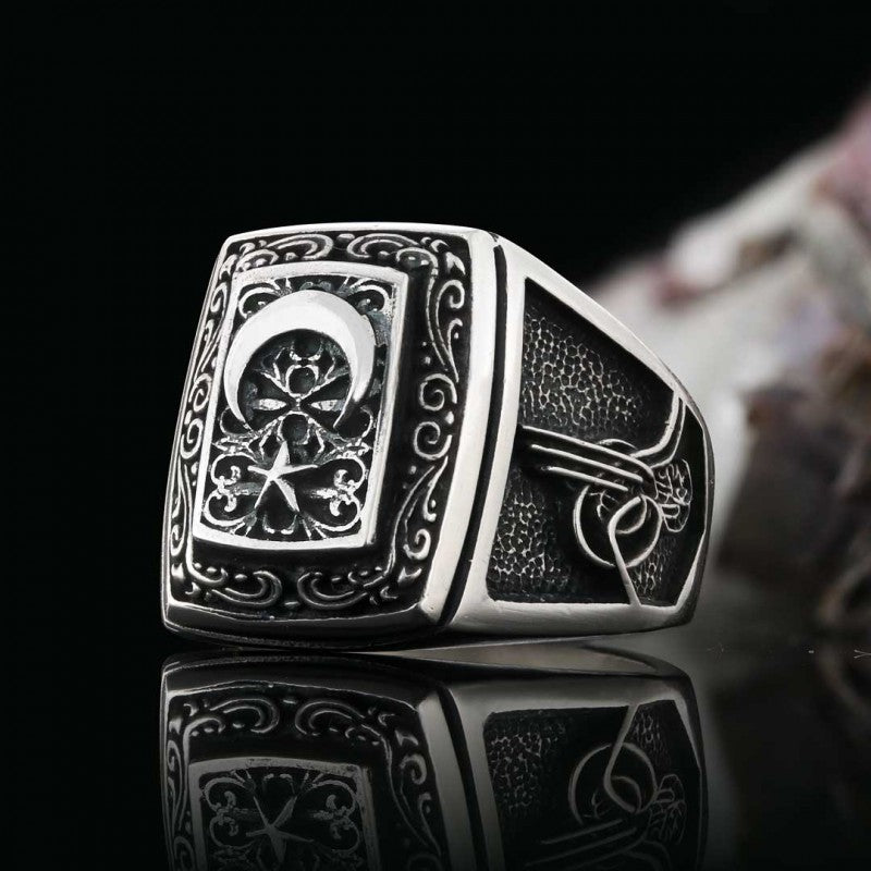 Hand Made Ottoman Engravings Motif Tughra Ring
