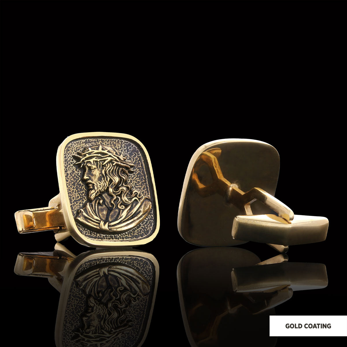 Jesus Cufflinks, Christ Cufflinks, Silver Religious Accessory, Gold Plated Jesus Jewelry, Handmade Christian Cufflinks, Religious Gift Gold Coating