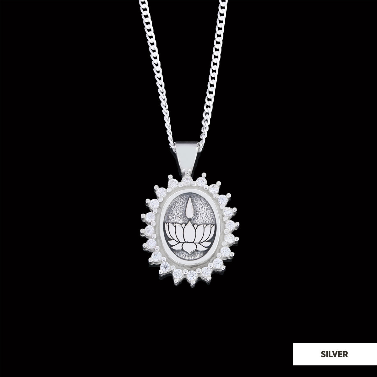 Lotus Flower Necklace, Buddhist Symbol Necklace, Stoned Buddhist Necklace, Lotus Jewelry, Women's Gift Accessory Silver