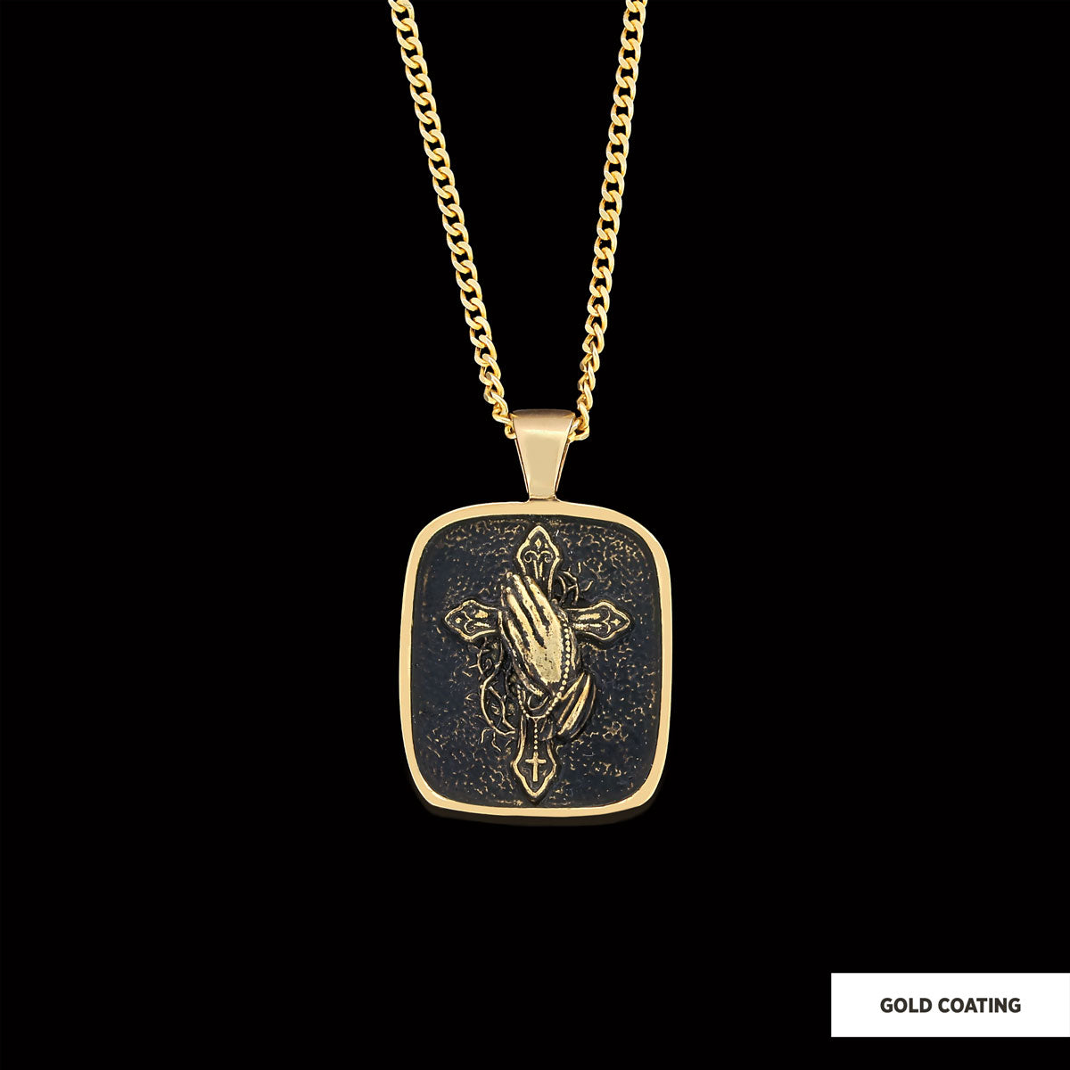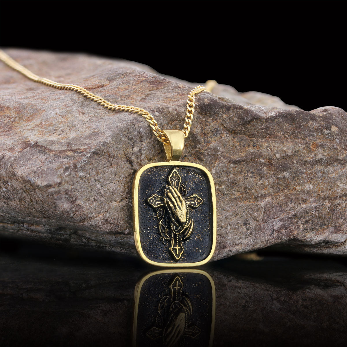 Praying Hands Cross, Religious Necklace, Christian Necklace, Jesus, Silver Necklace, Religious Jewelry Gold Coating