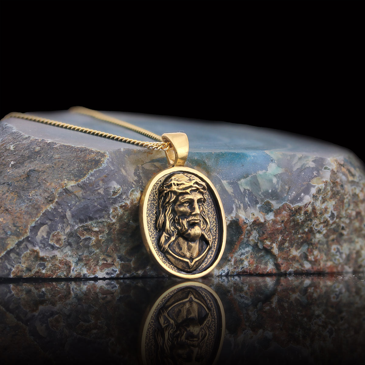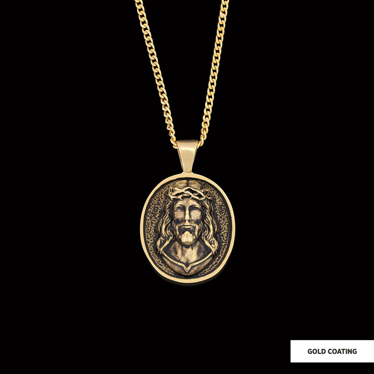 Religious Silver Necklace, 3D Silver Jesus Pendant, Religious Gift, Religious Christian Jewelry, Christ Accessor Gold Coating
