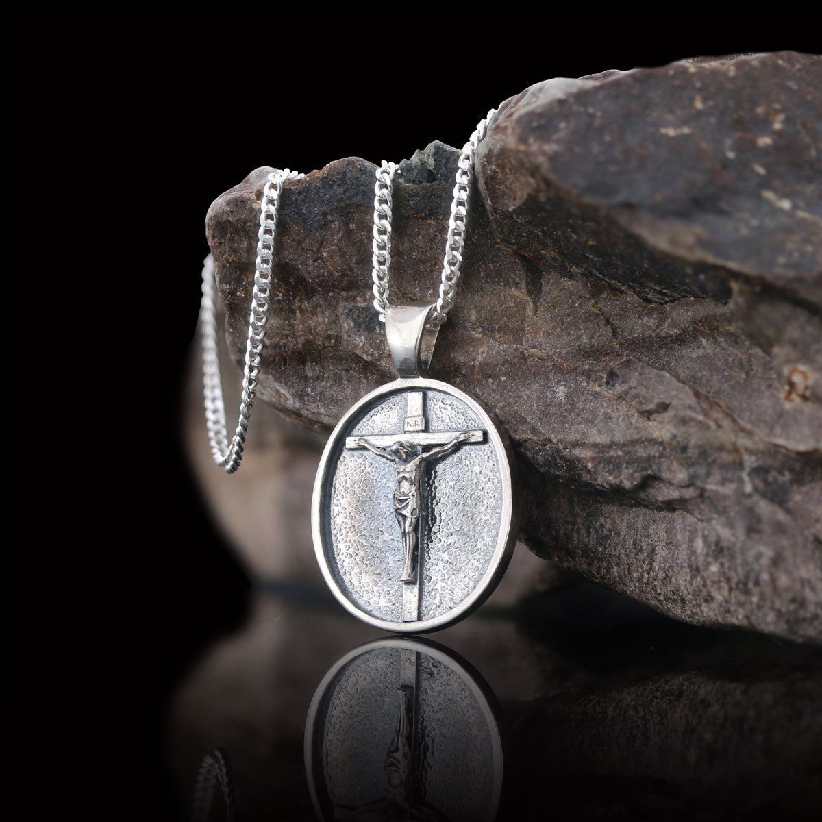 Silver Crucified Jesus Necklace, Crucifix Pendant, Christian Jewelry, Jesus Cross Necklace, Religious Jewelry Silver