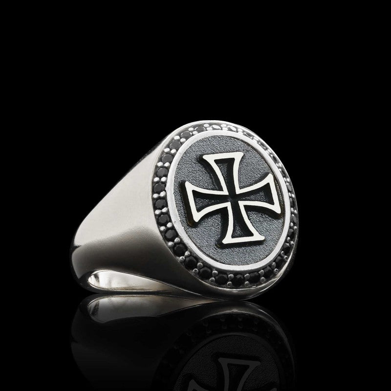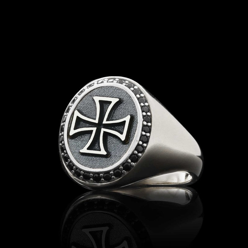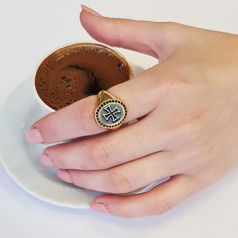 Special Design Oval Stone Sterling Silver Cross Christian Women Ring