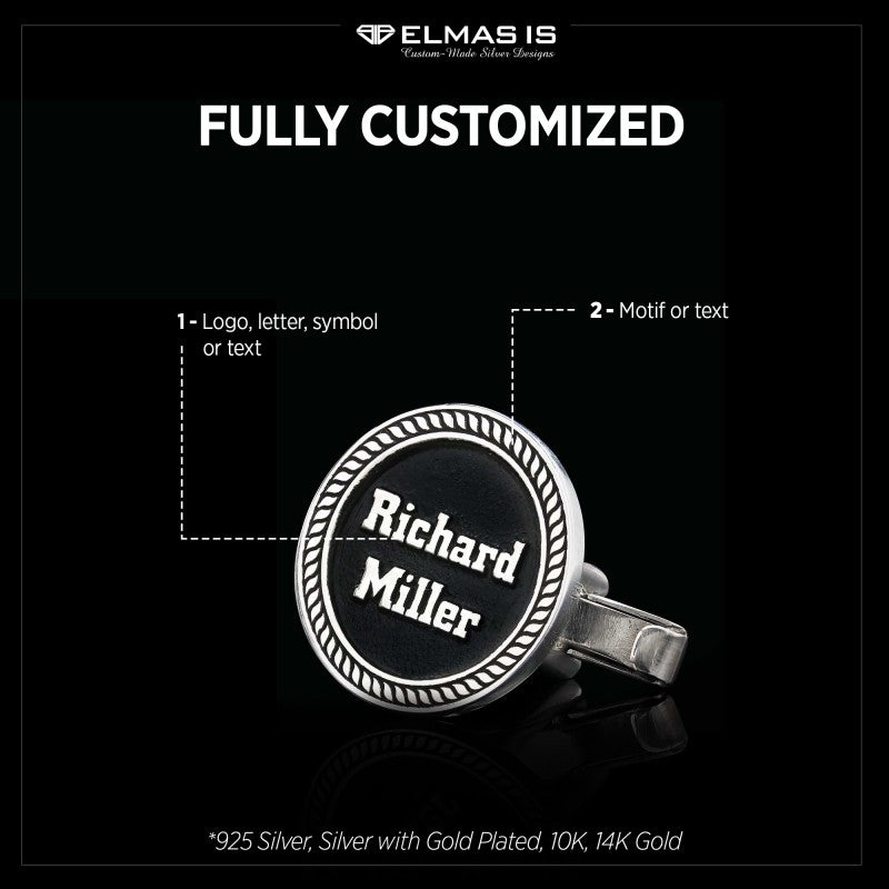 Unique Handmade 925 Sterling Silver With Motifs Round Cufflinks